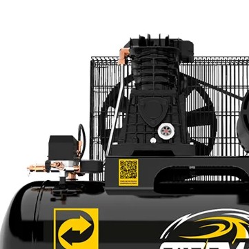 Opera com pressão máxima de 140 PSI, sendo equipado com motor monofásico de 2 HP, compatível com tensão 110/220V, garantindo versatilidade na instalação. Seu reservatório de 100 litros proporciona boa autonomia para serviços que exigem fornecimento contínuo de ar comprimido.