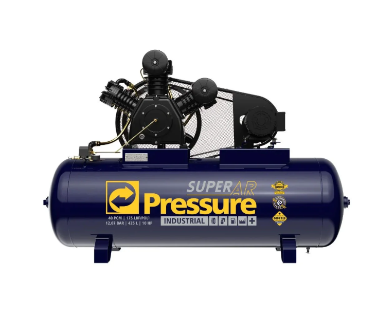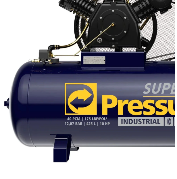 O Compressor de Ar Super Ar 40/425V 40 PCM 425 Litros da Pressure é desenvolvido para aplicações industriais que exigem alto volume de ar comprimido, grande capacidade de armazenamento e elevada pressão de operação.