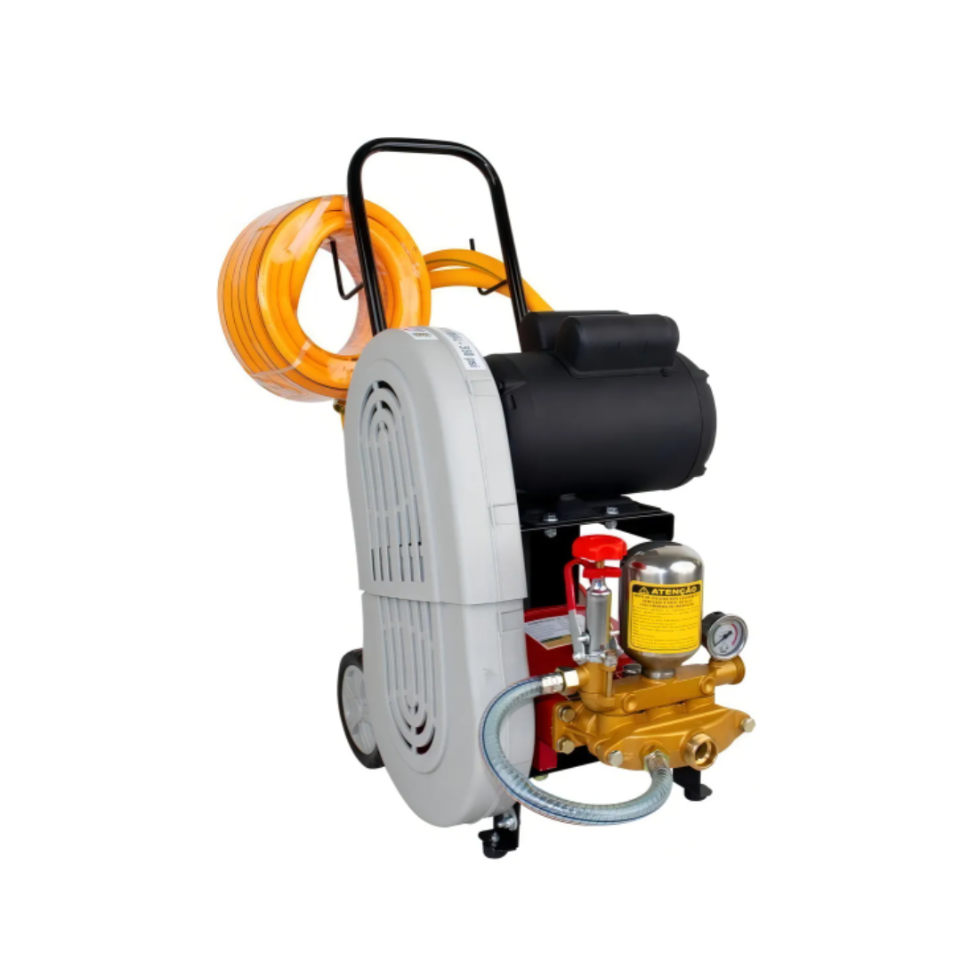 Equipado com motor de 2 CV monofásico (127/220V – 60Hz) e rotação de 1700 RPM, o equipamento oferece pressão máxima de 400 PSI e vazão de 28 litros por minuto, garantindo eficiência e rapidez na remoção de sujeiras médias e pesadas.